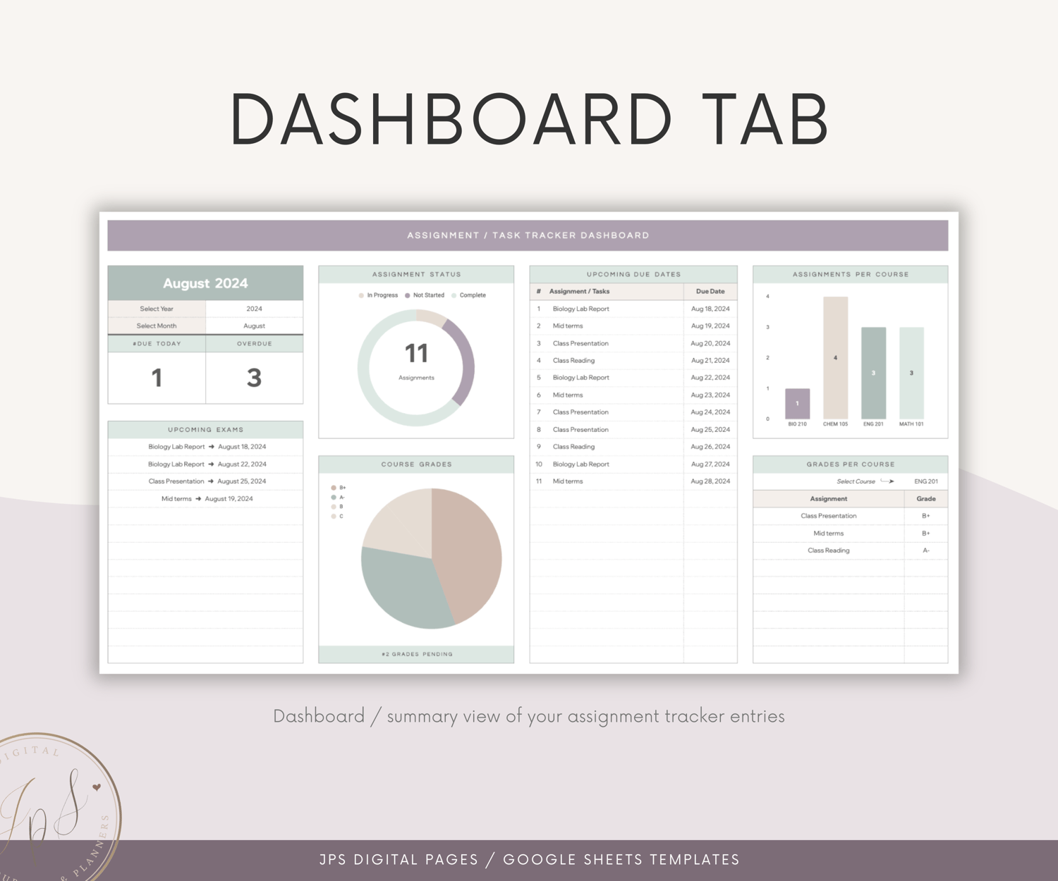 Organize your academic life with our Assignment/Exam/Task Tracker Spreadsheet. This robust and easy-to-use template helps you manage your coursework, track your exams, and plan your reading and study schedule, all in one place.