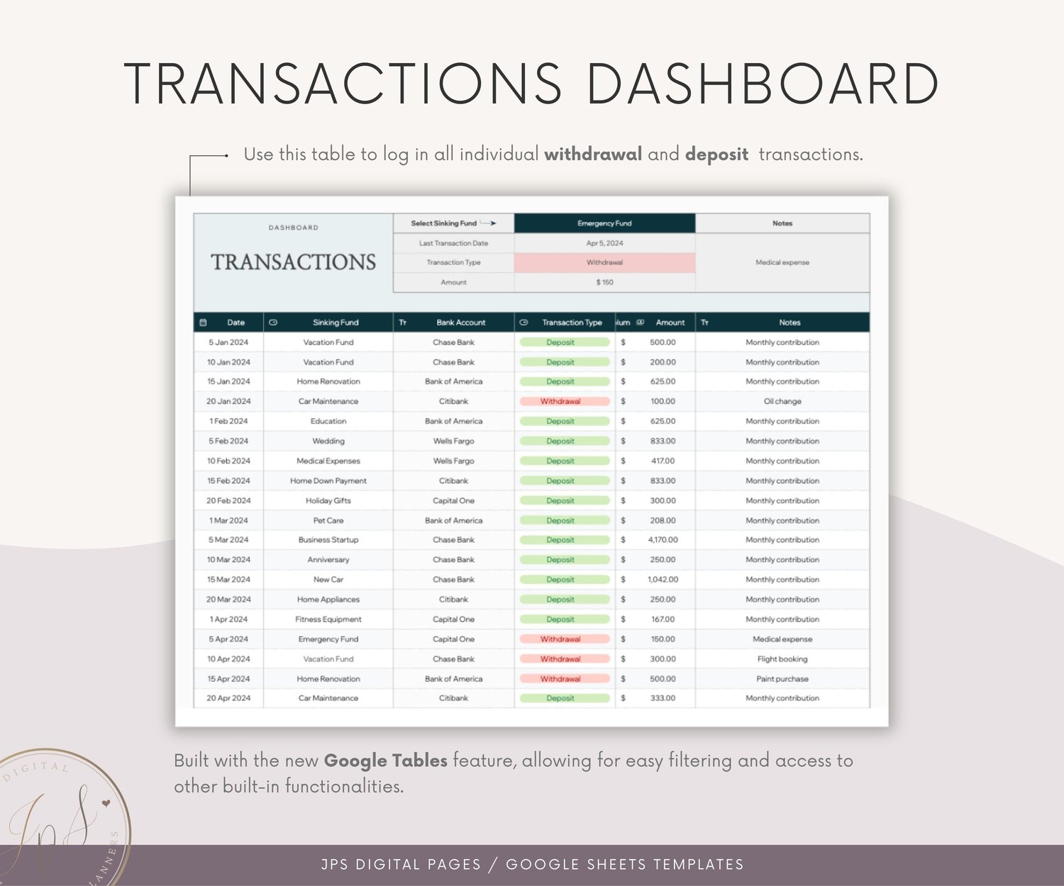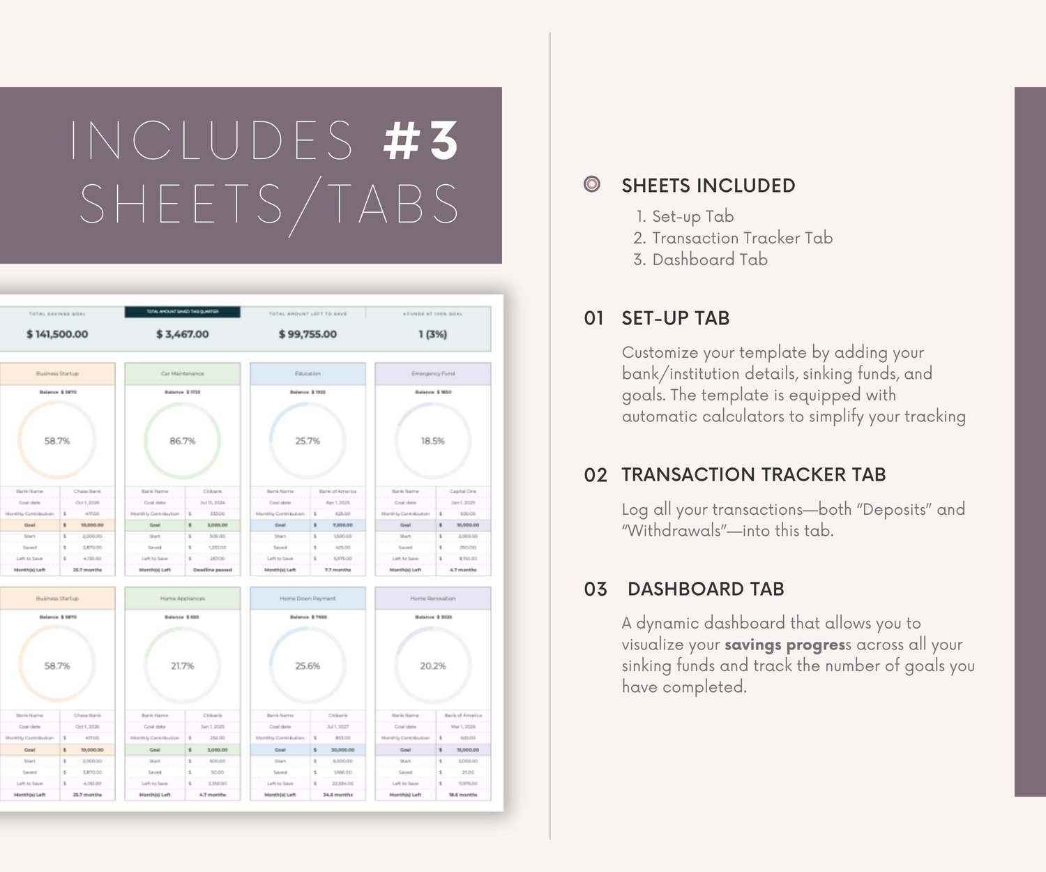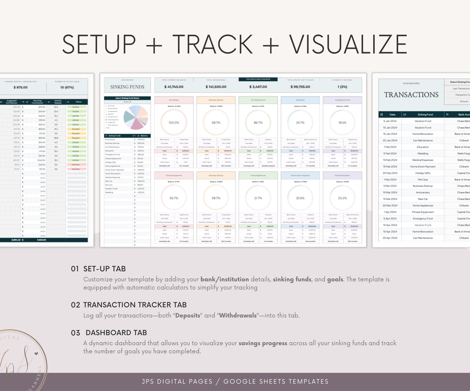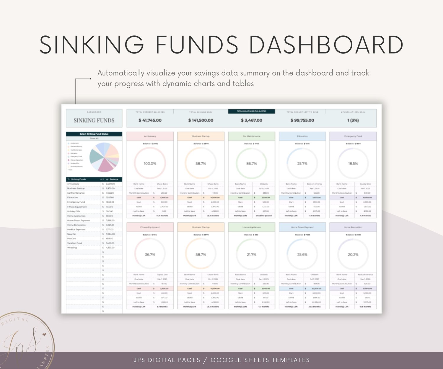 Sinking Funds Tracker Spreadsheet, Google Sheets Savings Tracker