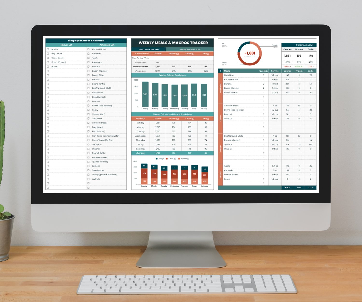 Weekly Macros Tracker & Meal Planner | 7-Day Meal Planner + Shopping List