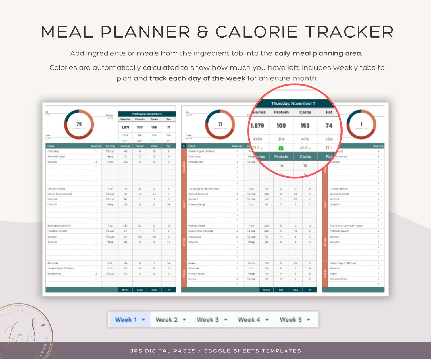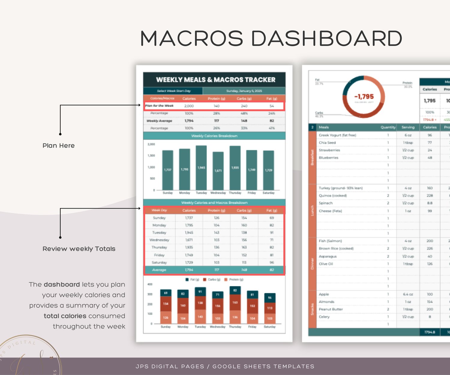 Weekly Macros and Calorie Tracker, Weekly Meal Planner