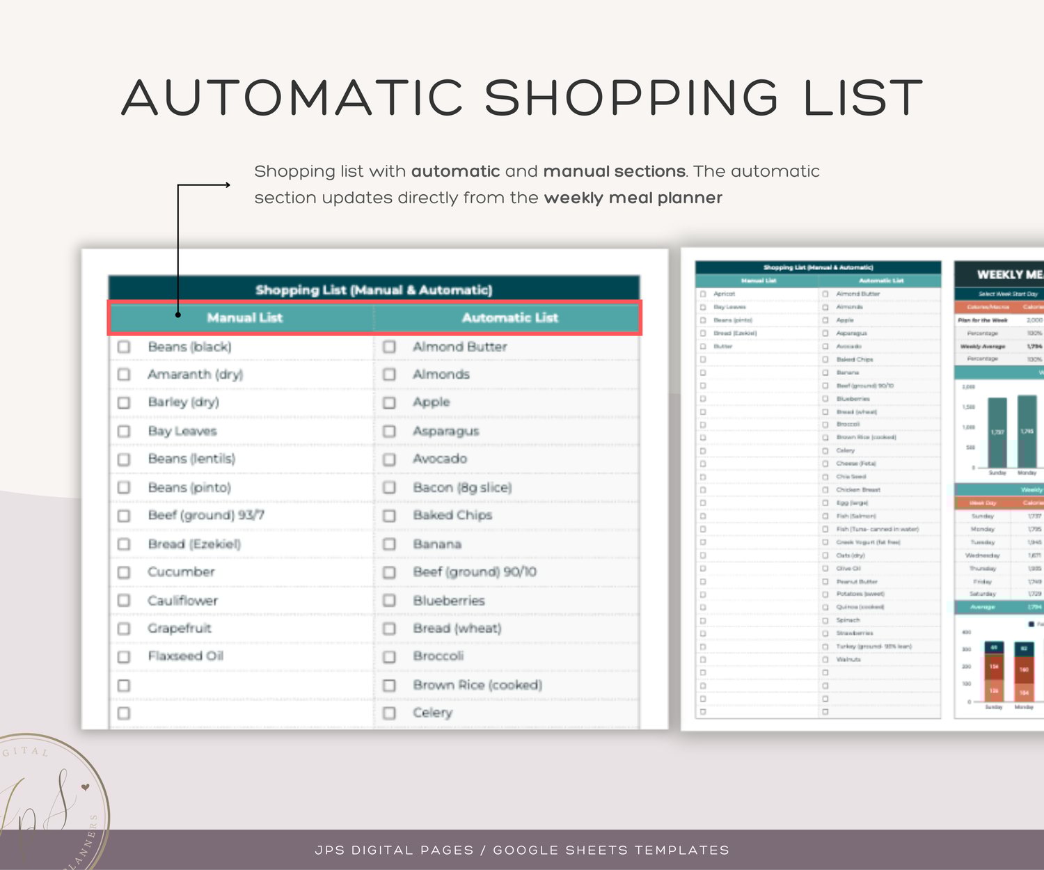 - Automatic Shopping List: Automatically generate a shopping list based on the meals planned, with an option to add manual items