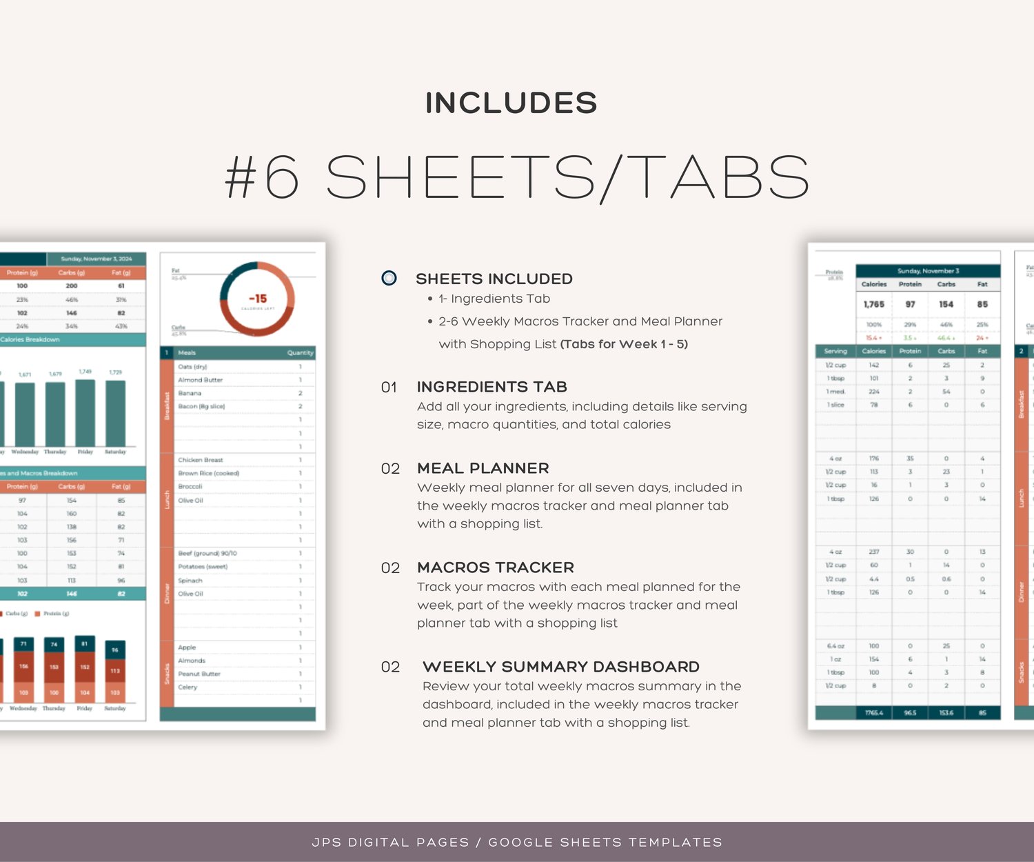Tabs Included (6 Sheets/Tabs):
