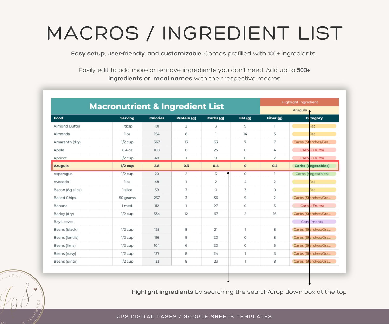 Customizable: Prefilled with 100+ ingredients, and you can add up to 500+ ingredients or meal names along with their respective macros.