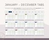 - Simplify Your Workflow: With 12 color-coded monthly tabs for January - December