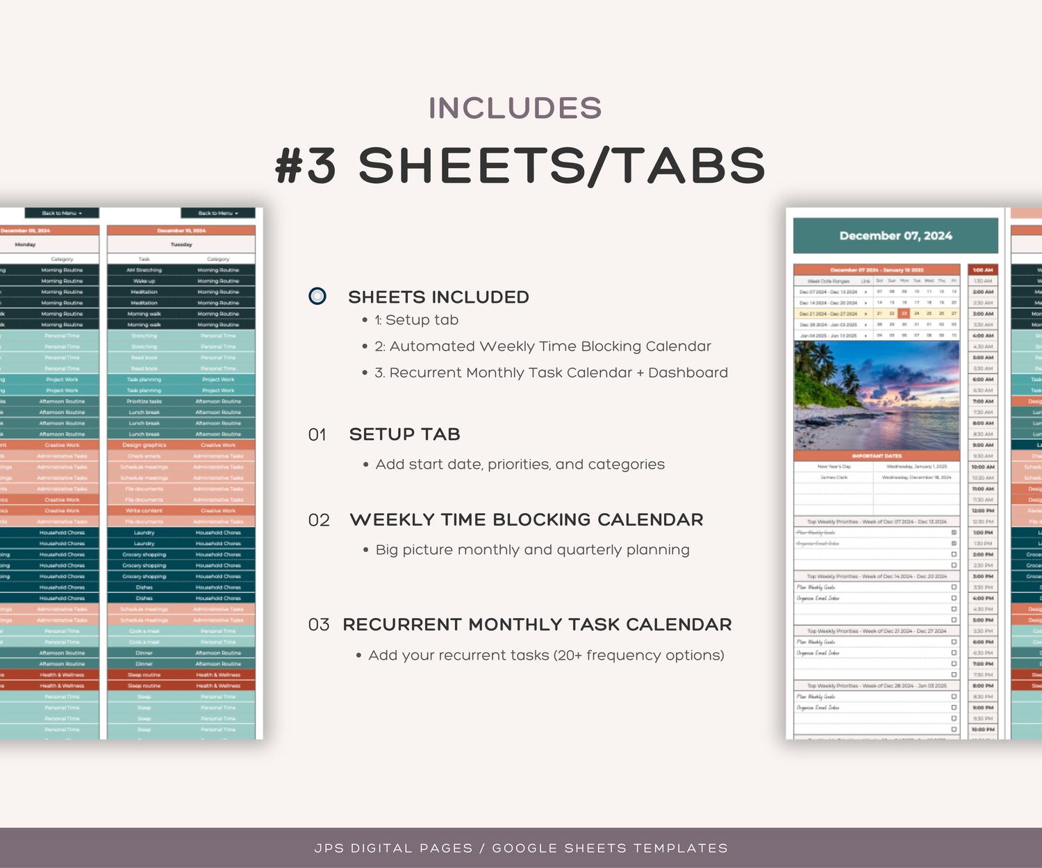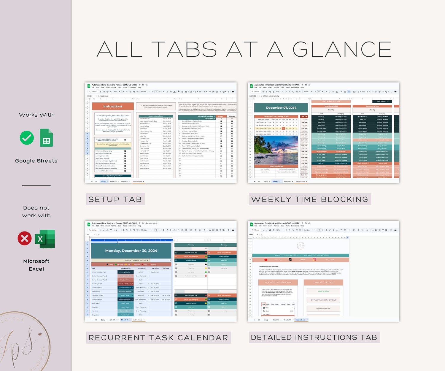 Compatible with Google Sheets only—Excel is not supported. Start managing your time effectively and achieving your goals today!