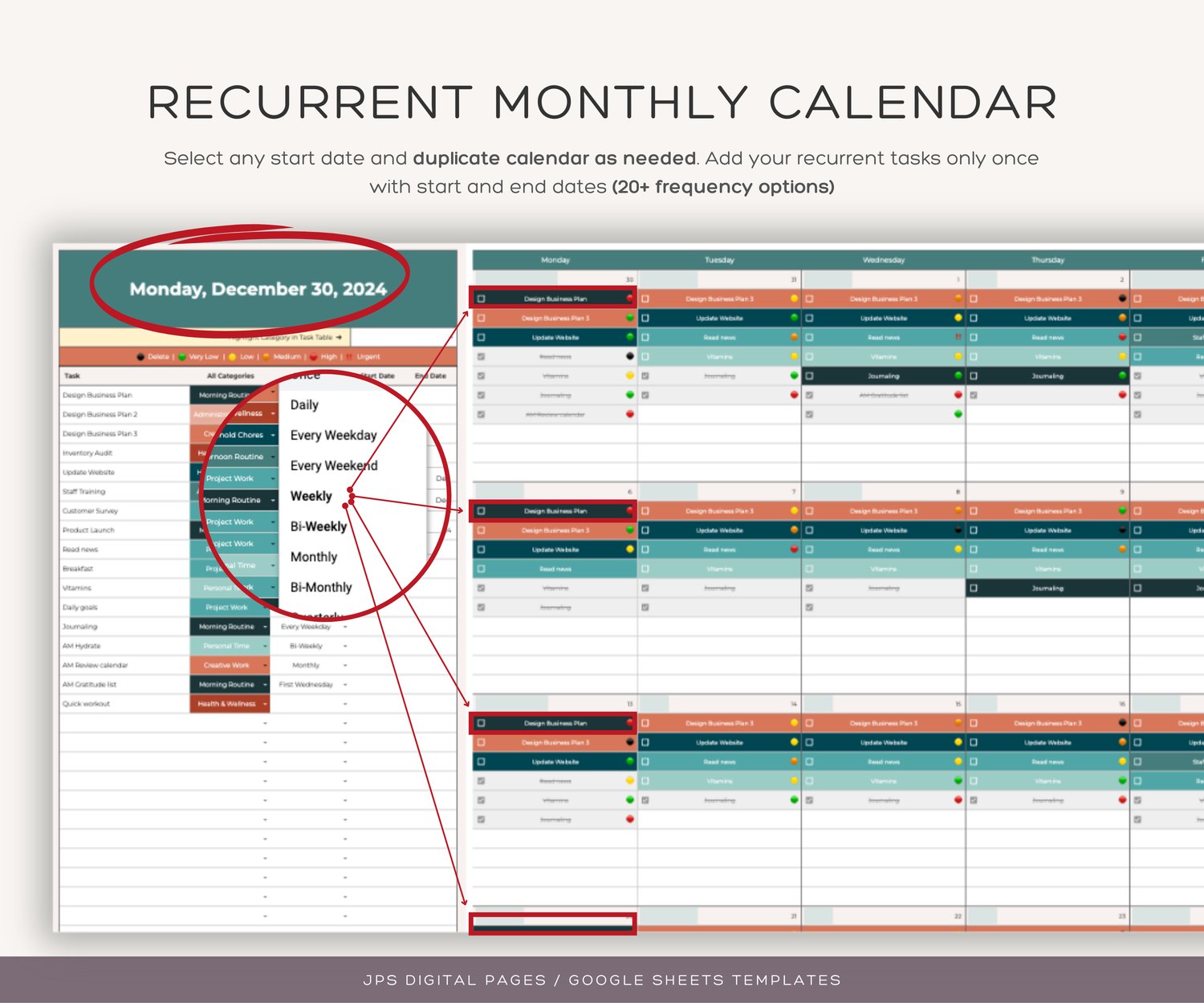 - Recurrent Monthly Task Calendar: Automate and duplicate tasks easily for monthly planning.